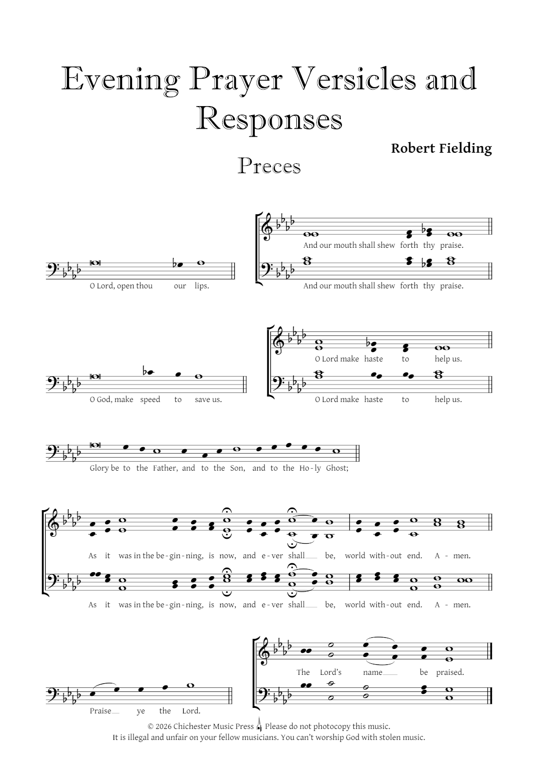 Written for use during the Sarum College Easter Course for Singers and Choral Directors in April 2002, the setting uses a plainchant style of notation, leaving the familiar texts to dictate the rhythms, dynamics and tempi of both cantor and choir parts. The recording was made during Choral Evensong by the singers on the course in Salisbury Cathedral.
