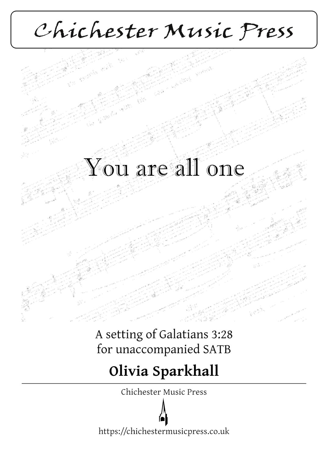 You Are All One was conceived as a musical representation of the diverse voices of a body of people coming together to speak as one. This is achieved through chant-like repetition, at times in unison, then in harmony, with snippets of melody for each voice-part and, for a time, the upper voices becoming a chattering multitude over a sustained lower voices chord. It is about difference and similarity, about the individual voice and the collective; it ultimately captures the strength that exists when we act in community with each other.